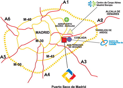 La ubicación del Puerto Seco de Madrid en Coslada, permite que nuestra iniciativa forme parte de una de las mayores plataforma logísticas de Europa, pues la zona Madrid-Coslada recoge proyectos logísticos de gran envergadura: